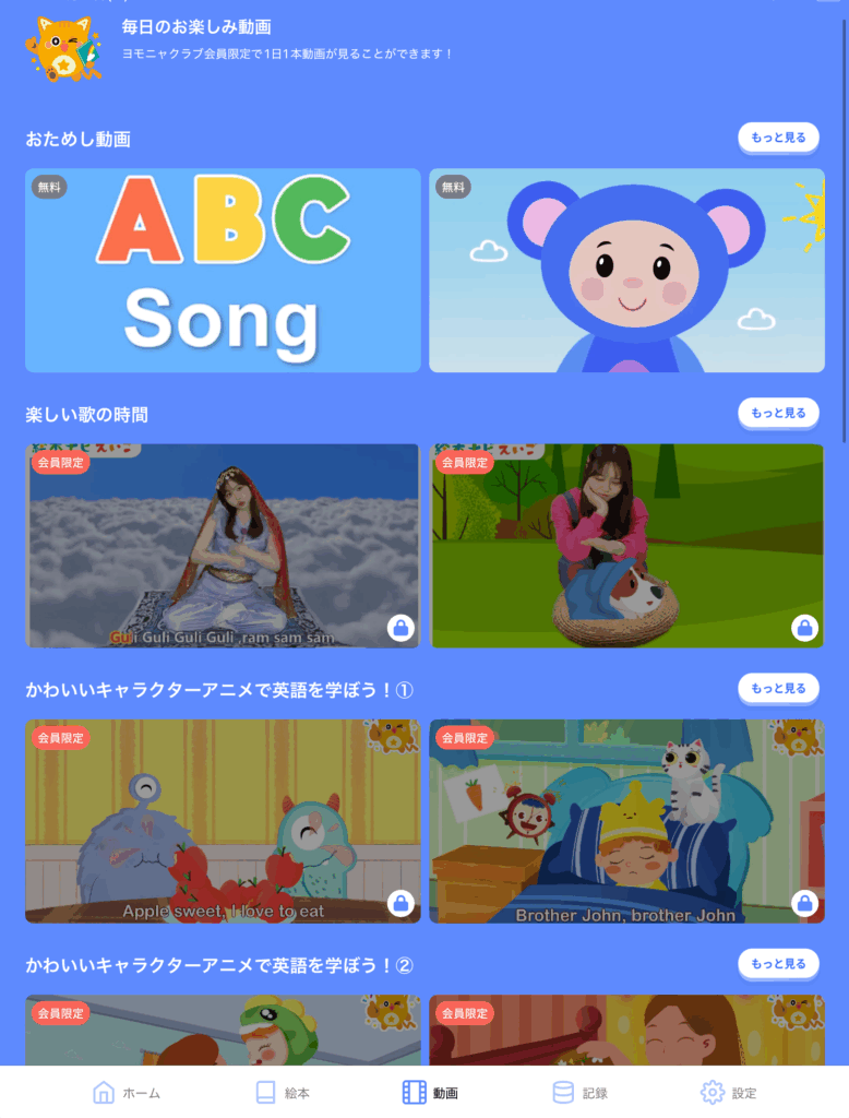 歌や英語アニメのような短い動画が120本以上あり、1日1本視聴可能です。